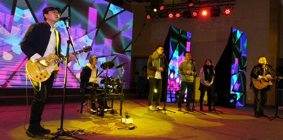 det365官网教职工以“像风一样自由”为曲目在本次新年音乐晚会上进行乐队演唱,精彩的表演将演出推向高潮,赢得了在场观众阵阵掌声。