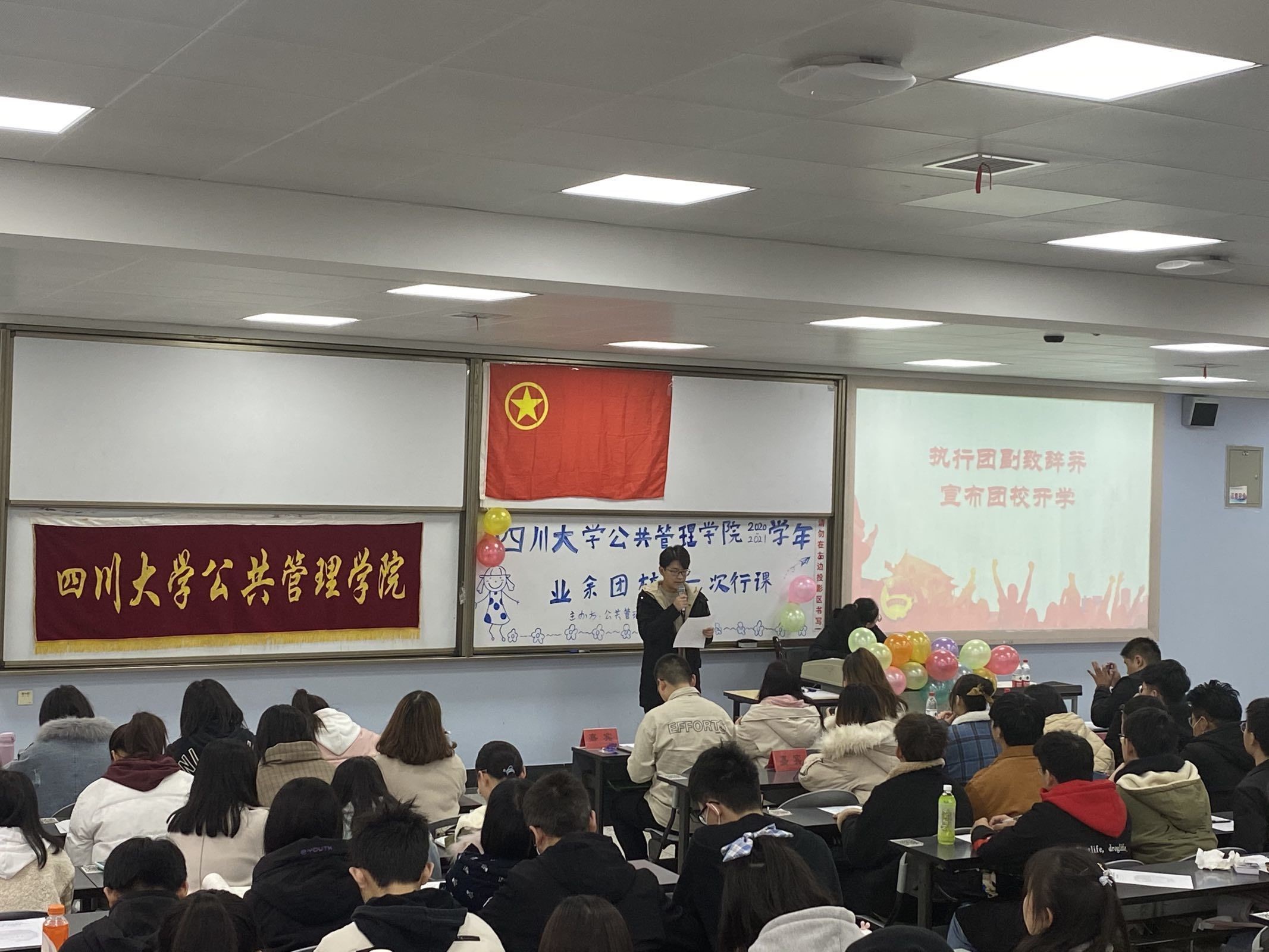 2020年11月29日9:00-11:00,det365登录网站主页2020-2021学年团校开学典礼暨第一次行课在江安校区一教B407成功举办。为帮助新生团员同学们更好地融入大学学习生活,培育有理想、有信念、有本领、有担当的时代新人,学院团委组织开展了det365登录网站主页新学年团校,团校由学院团委组织部承办。本次团课邀请到校团委素质拓展部部长张韵老师来为同学们授课,学院团委书记青杨媚老师、团校主要负责同学和205位团校学员参与了本次活动。