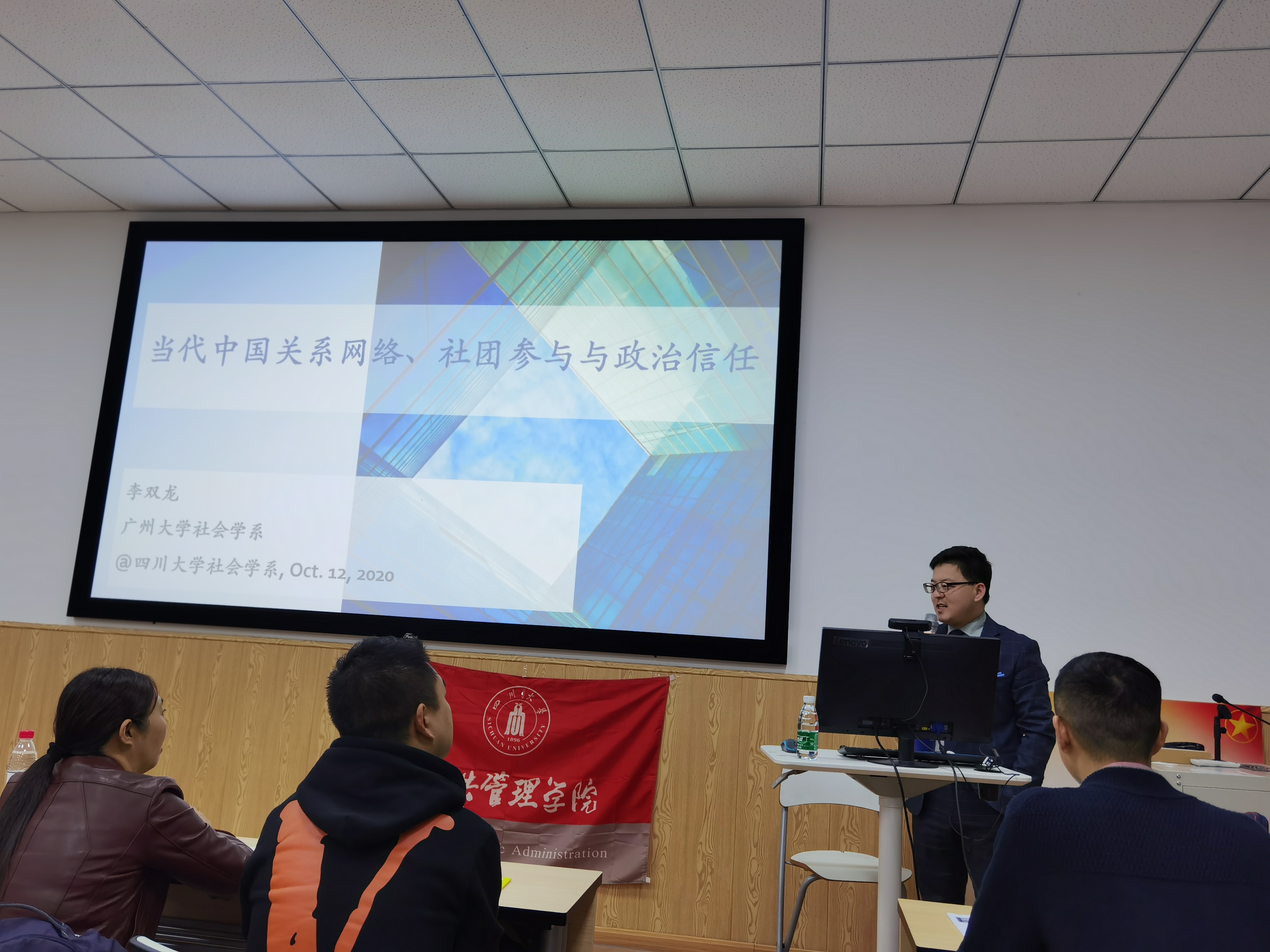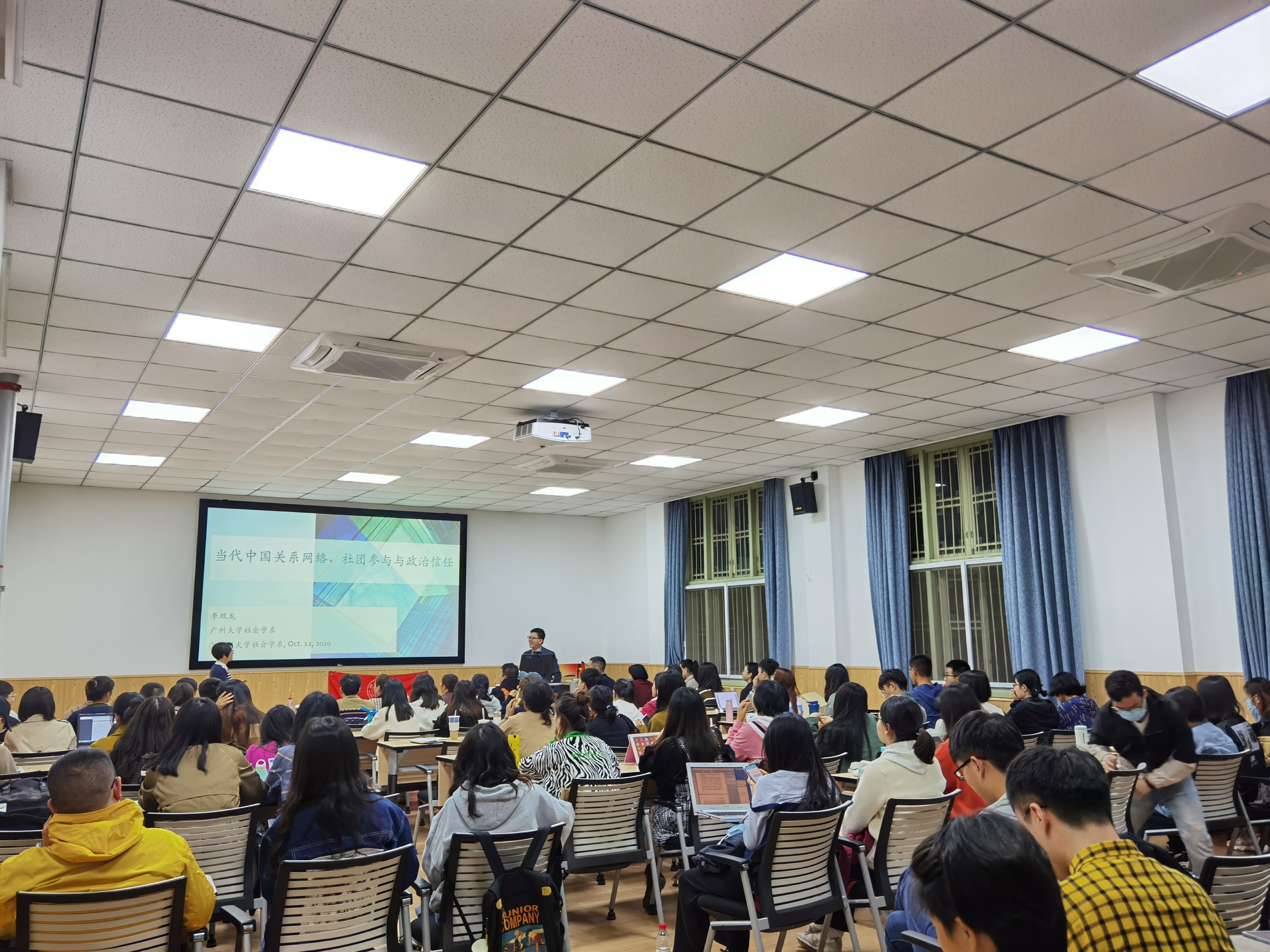 2020年10月12日晚上7点,det365登录网站主页社会学·华西论坛系列讲座第八期成功举办。广州大学社会创新研究中心副主任、社会学系李双龙副教授在det365官网106报告厅开展了主题为“当代中国的关系网络、社团参与和政治信任(Guanxi Networking, Associational Involvement, and Political Trust in Contemporary China)”的精彩讲座。讲座由社会学与心理学系郑莉副教授主持,社会学与心理学系、兄弟院校师生近百人参加了讲座。