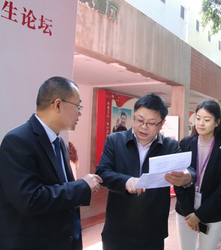郭勇副书记(中)和det365官网史云贵院长(左)、董欢老师(右)合影