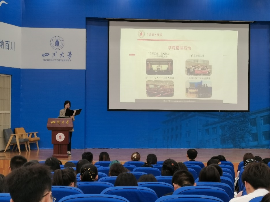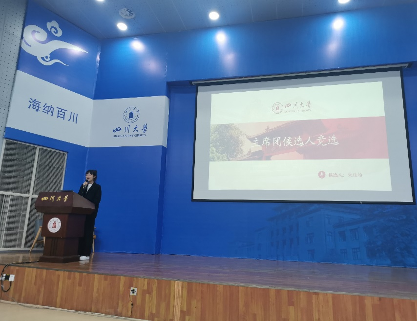 随后,大会进入竞选换届环节。首先由学院团委学生会主席候选人朱佳怡进行演讲,表示将着重从学生会深化改革、构建大宣传格局、打造特色活动等维度进行了展望。学院团委学生会副主席候选人李佳淇、刘栗源,分别对个人发展规划以及公管品牌活动规划进行了设想。执行主席候选人都佳文通过自身经历来表达对学院未来工作的思考。