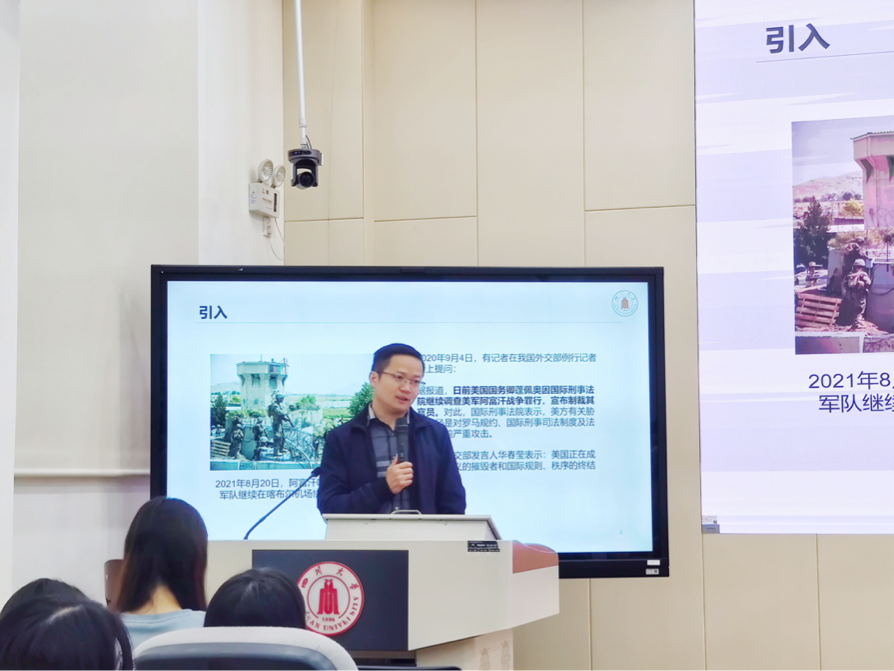 杨磊老师以“多边主义:世界发展的破局之策”为题,首先向同学们阐述了研究生学习综合素质课的重要性,“形势与政策”板块作为主要内容之一,是同学们了解时事、树立正确三观的重要途径。随后,老师援引美国军队在阿富汗喀布尔机场撤侨事件,以及近期上映的热门电影《长津湖》,提出一代人有一代人的担当,和平年代仍有新的挑战这一观点。