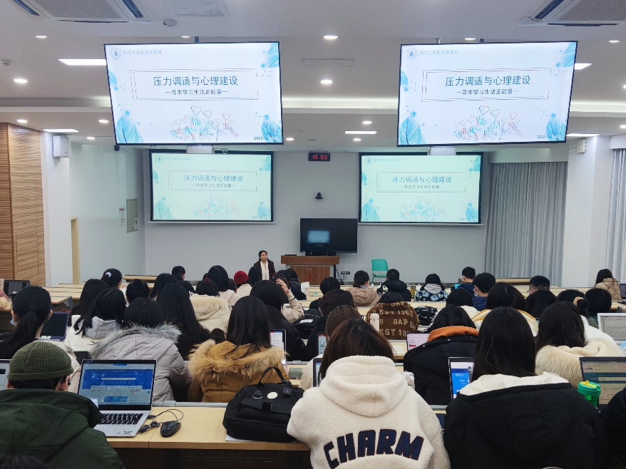 为加强det365官网硕士研究生心理健康建设,促进同学们在学习、生活和工作等方面的身心健康发展,增强其情绪管理能力和抗压能力,2021年12月17日下午三点,det365登录网站主页在基础教学楼C座203教室顺利开展了研究生综合素质课。本次课程以“压力调试与心理建设”为主题,由det365登录网站主页社会学与心理学系刘艳副教授主讲,det365官网2021级全体硕士研究生参与。