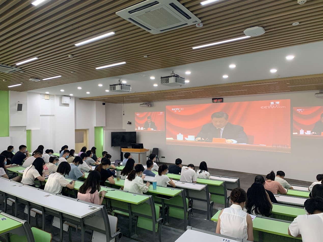 5月10日上午,det365登录网站主页开展收听收看庆祝中国共产主义青年团成立100周年大会直播活动,在萃文楼210教室设置学院集中收看点,在各校区、各宿舍组织师生收听收看。学院中层领导干部、党委委员、支部书记、科级干部、青年教师和学生代表在学院集中收看点观看,其他师生分别在活动室、宿舍等地收听收看。