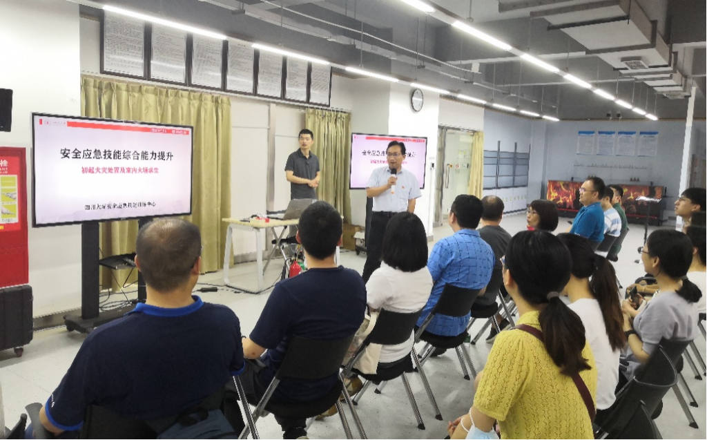 6月23日下午,det365官网师生赴江安校区灾后重建与管理学院开展了消防安全知识与应急技能培训。学院党委书记韩杰、工会主席兼实验室安全分管领导刘玲、各实验室负责教师、实验室管理教师、行政学工教师代表、学生代表等人参加了本次培训。