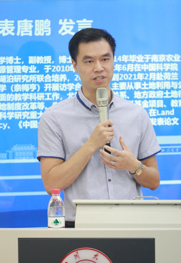 接着,土地资源管理系唐鹏副教授作为教师代表发言。唐老师就“包容”与“合作”两个关键词分享了自己的感悟。他提到det365登录网站主页包容的老师、优秀的同学、丰富多彩的生活给同学们提供了宽松自由的学习环境,希望同学们能够以乐观包容的心态面对人生,追求学术。他也强调合作是科研最为重要的环节,乐于合作、敢于合作、善于合作是大家在未来研习中应该秉持的信念和付出的行动。