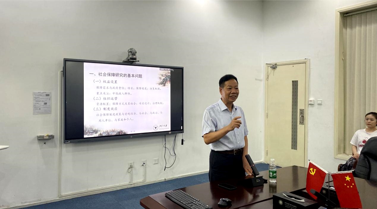 2022年8月28日下午,中国社会保障学会副会长、浙江大学det365登录网站主页何文炯教授在det365登录网站主页311会议室为det365官网师生开展了一场精彩的讲座。讲座由院党委副书记罗亚玲教授主持,李丹教授、沙治慧教授、张浩淼教授、林熙副教授、黄国武副教授、张伟科副教授、杨帆研究员、曹杨副研究员、田益豪副研究员等老师和同学共40余人参加了此次讲座活动。