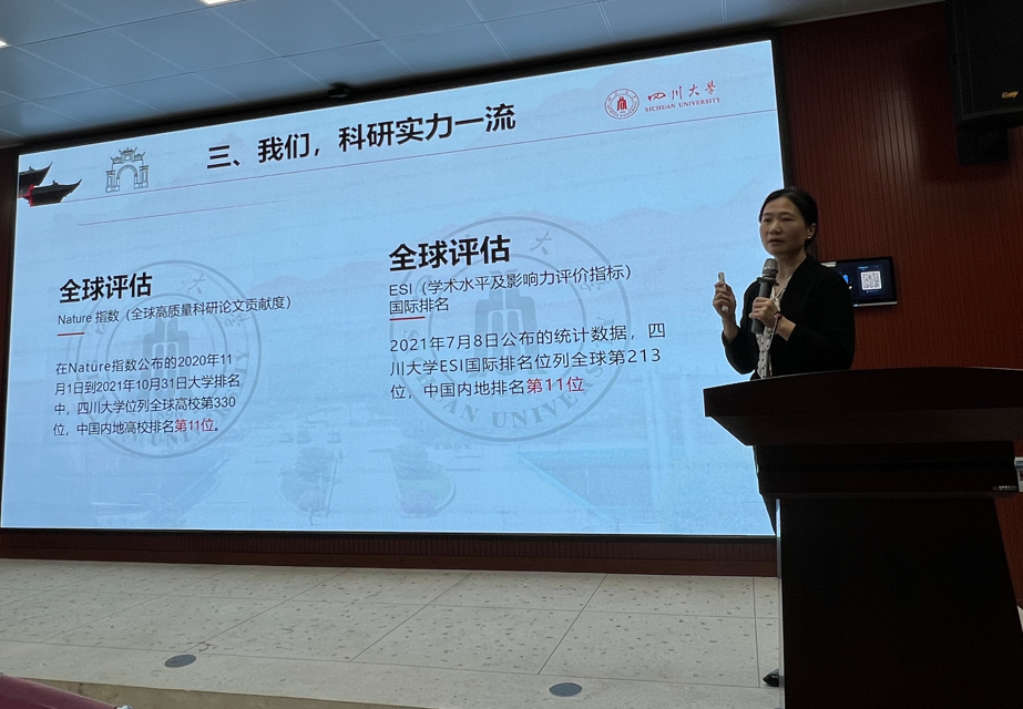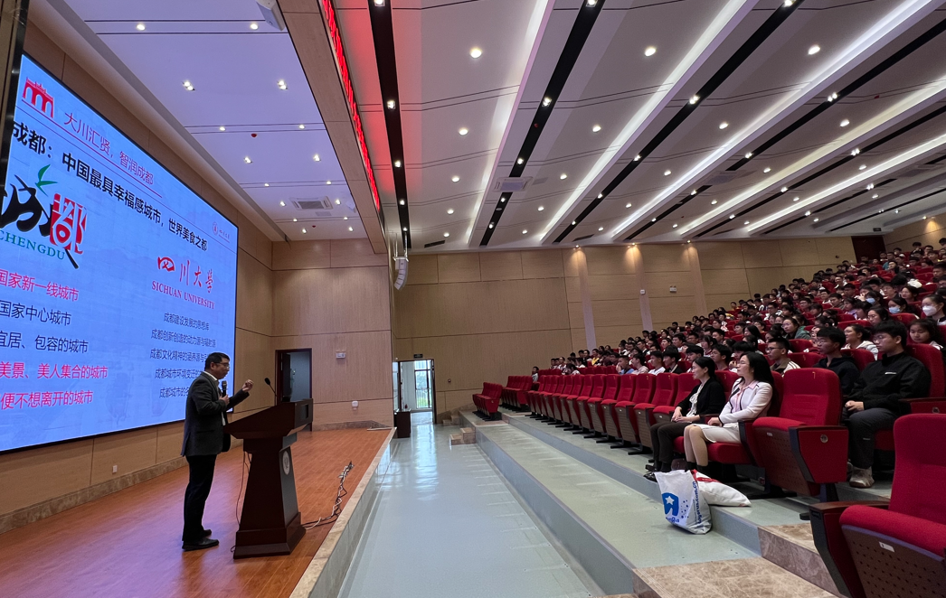下午,招生组来到广西另一所名校柳州铁一中学,与该校领导及高三年级组相关老师进行深度交流。随后,招生组老师为高一、高二的学生进行了讲座,廖爱民副主任介绍了det365登录网站主页的办校历史、本科教育、学科实力及校园环境,希望在同学心中播下一颗报考川大的种子。曾菊梅副教授为同学们带来《魔高一尺,道高一丈:传染病药物发现》的科普讲座,用简洁易懂的语言向同学们介绍医学类相关知识,点燃同学们从事科学研究的热情。