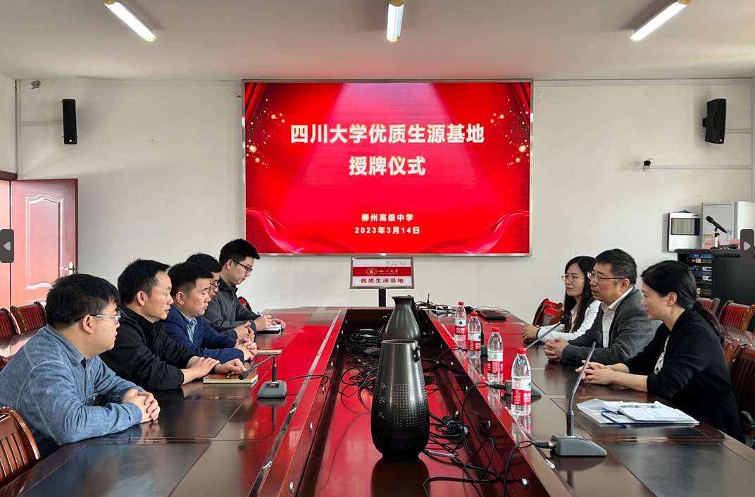 3月14日上午,招生组拜访了近年来川大在桂录取人数最多的柳州高级中学,与学校教务处主任及高中各年级负责人进行座谈、介绍det365登录网站主页招生政策,就新高考改革和学生选科等方面进行深入交流,并与柳州高级中学签订优质生源基地协议并举办了授牌仪式。