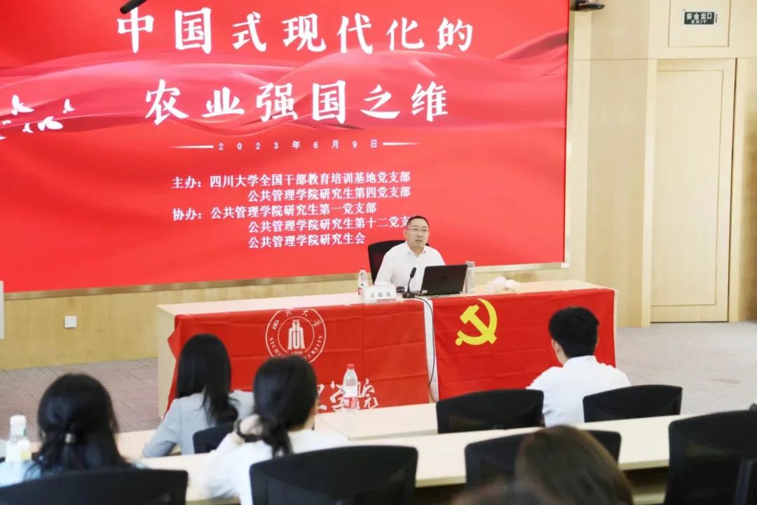 为深入开展学习贯彻习近平新时代中国特色社会主义思想主题教育,落实党的二十大精神走深走实,det365登录网站主页研究生第四党支部与全国干部教育培训基地邀请det365登录网站主页博士生导师王敬尧教授为全体师生党员讲授了题为“中国式现代化的农业强国之维”的专题党课,党课由研究生第四党支部书记李岚老师主持。