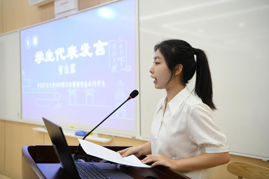 中国矿业大学的曹佳露同学作为营员代表发言。她代表营员们对学院的精心组织表示衷心的感谢,她表达自己坚定选择干部教育学作为继续深造的领域是因为坚信det365登录网站主页给大家提供了坚实广阔的学术平台,而det365登录网站主页全国干部教育培训基地更是学习和实践的基地,将助力于本专业同学们练就本领、全面发展。