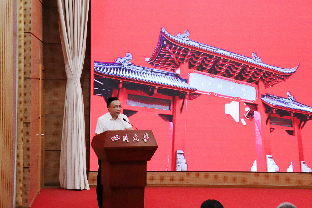 2023级MPA新生代表周川与大家表达了自己激动忐忑之情以及对未来3年学习生活的期待。他希望同学们能一起向着成为一名合格的川大人、公管人努力奋斗!