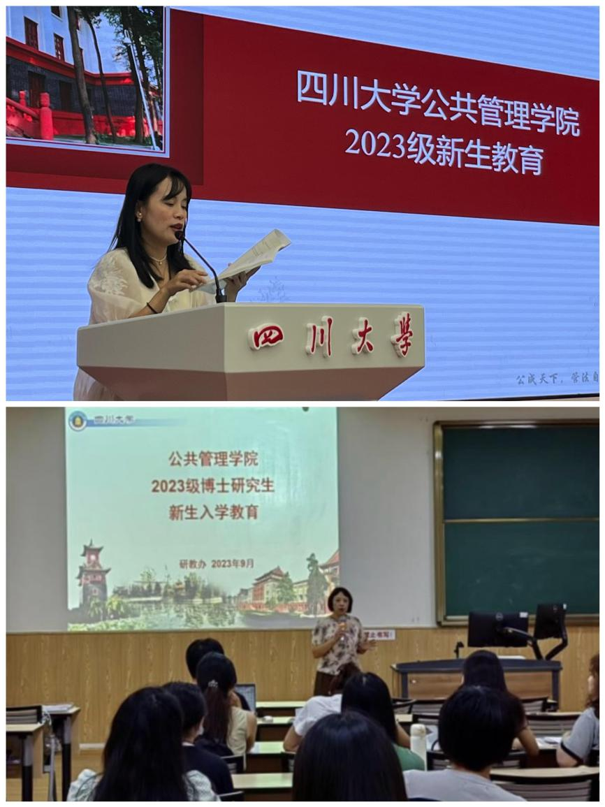 9月13日上午和9月14日下午,研教办和学工组老师围绕“学生培养和管理”分别给硕、博研究生新生开展入学教育第一讲。老师们重点就学籍管理、培养方案、学生选课等方面进行了说明,详细对研究生思想政治教育、日常管理规定、勤优助补事项等做了解读,加快促进研究生新生的角色转变。学院研究生会主席宋欣萌也对研会情况进行了介绍,鼓励同学们加入公管研会大家庭。