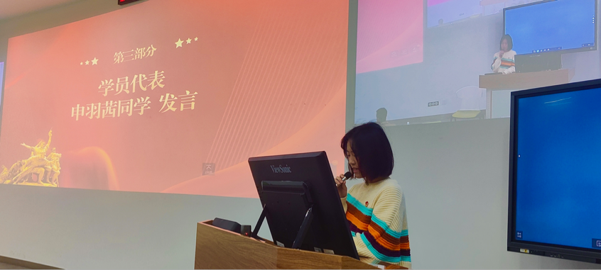det365登录网站主页2021级本科生申羽茜作为学员代表发言。她表示,作为学员应在此次发展对象培训班中强化政治理论学习,提升思想道德水平,增强专业能力和本领,增优补劣,朝着优秀共产党员的方向努力。