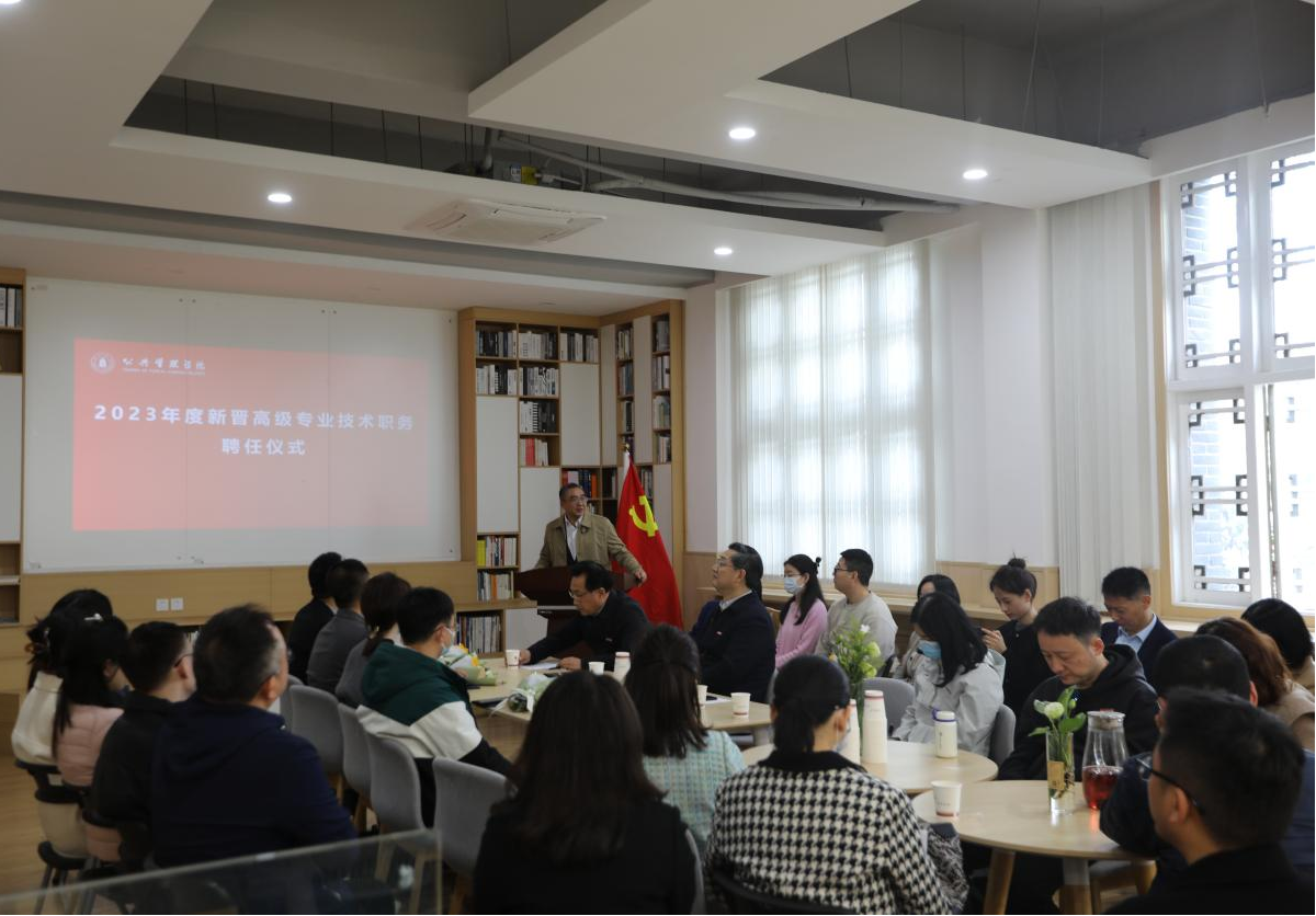 院长夏志强作了总结讲话,他表示高级职称是一份荣誉,更是一份责任,希望几位老师能以此为契机,成为学院人才培养、师德师风的示范和科学研究的典范,做好人才培养、科学研究和师德示范工作,带动广大青年教师一起进步一起奋斗,希望每年戴上鲜花接受聘书的人越来越多,越来越好。