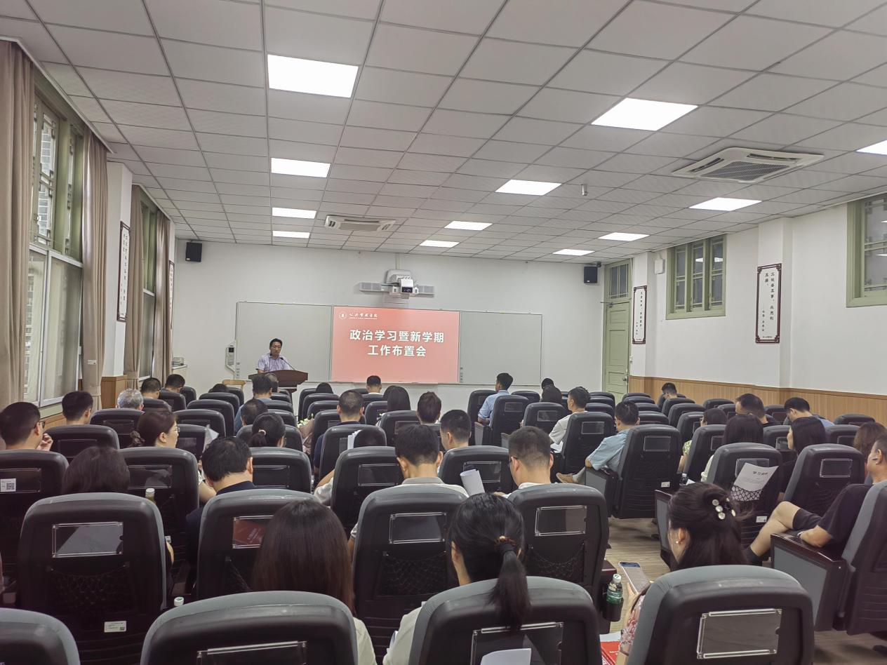 9月5日,det365登录网站主页在det365登录网站主页望江校区萃文楼博文会议室召开政治学习暨新学期工作布置会。学院领导班子成员、党委委员、工会主席、专职组织员、系主任、全院教职员工100余人参加了此次会议。会议由学院党委书记韩杰主持。