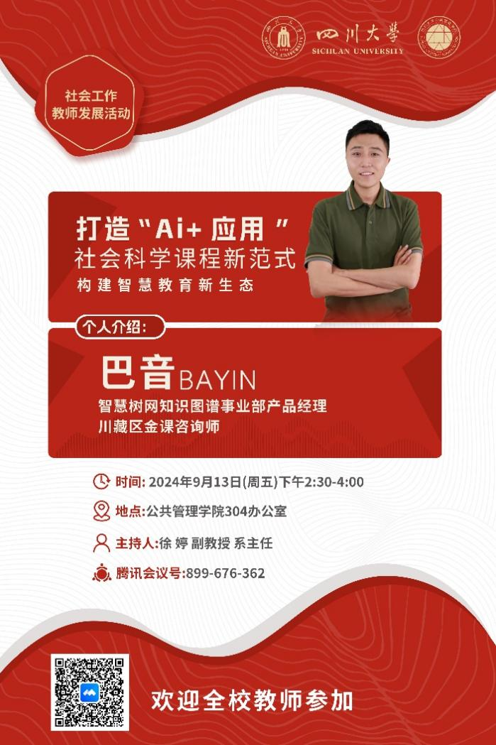 9月13日下午,社会学与心理学系举行社会工作教师发展活动。在系主任徐婷副教授的组织下,邀请到智慧树网知识图谱事业部产品经理、金课咨询师巴音,开展题为“打造Ai+应用:社会科学课程新范式构建智慧教育新生态”的讲座与实操演示。社会工作本科专业负责人张威教授和其他承担本科教学工作的老师共同参与。