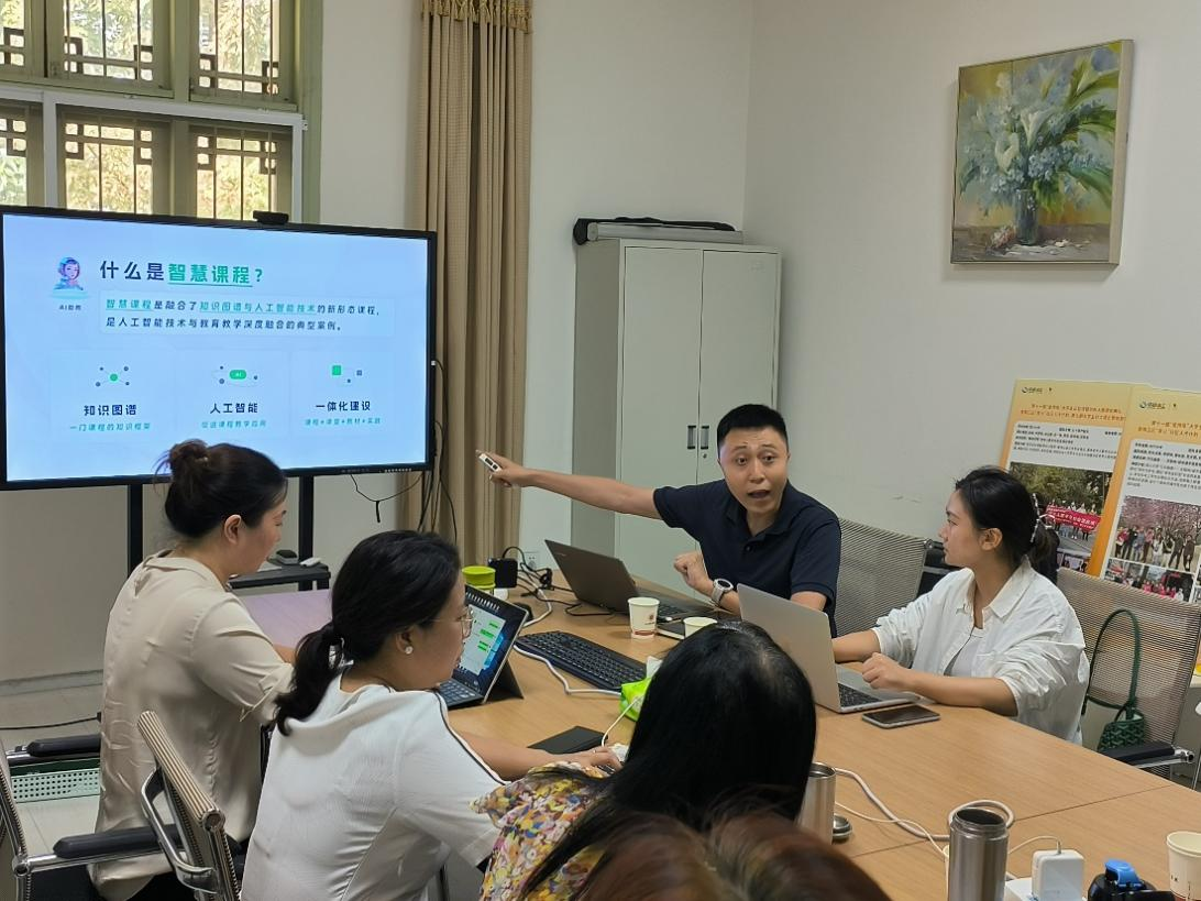 活动上,金课咨询师就如何使用AI工具促进课程建设、课堂教学、教师备课和线上教学,如何通过制作知识图谱、问题图谱和能力图谱服务于项目式、情景式和探究式等新型课堂形态,如何搭建与申报虚拟教研室、人工智能典型案例以及赋能教学创新大赛等问题,做了细致分享和现场演示。张威教授就AI如何进一步帮助老师增效减负与咨询师进行了探讨,智慧课程负责人何明洁副教授分享了AI教学的体会和心得,其他教师则与咨询师交流了AI工具在资源扩展、师生共建等方面的具体使用。