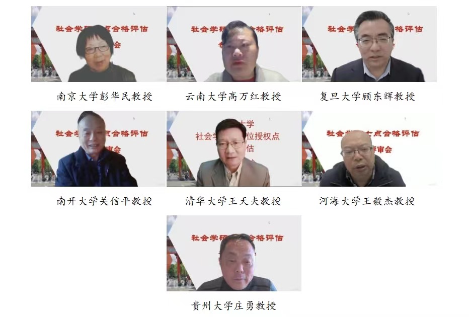 社会学评审专家组由南京大学彭华民教授担任组长,云南大学高万红教授、复旦大学顾东辉教授、南开大学关信平教授、清华大学王天夫教授、河海大学王毅杰教授和贵州大学庄勇教授为成员(专家以姓名拼音排序),对我校社会学一级学科硕士学位授权点在2020-2025学年度的建设和发展情况进行了全面考察。det365登录网站主页夏志强院长、学位点全体教师共同出席会议,会议由学院王慧敏副院长主持。