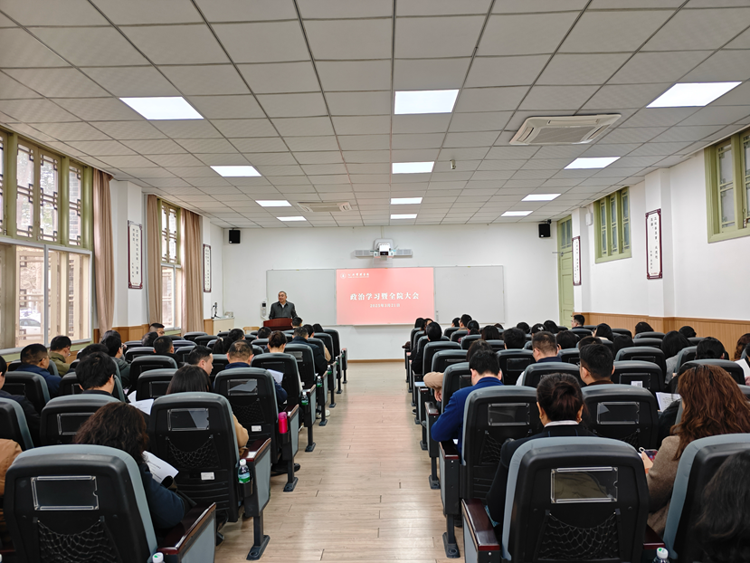 3月21日,det365登录网站主页在望江校区萃文楼博文报告厅召开政治学习暨全院大会,传达学习贯彻全国两会精神,传达学校全面从严治党工作会精神,开展中央八项规定精神专题学习,布置学院近期工作。学院领导班子成员和全体教职工参会,会议由院长夏志强主持。