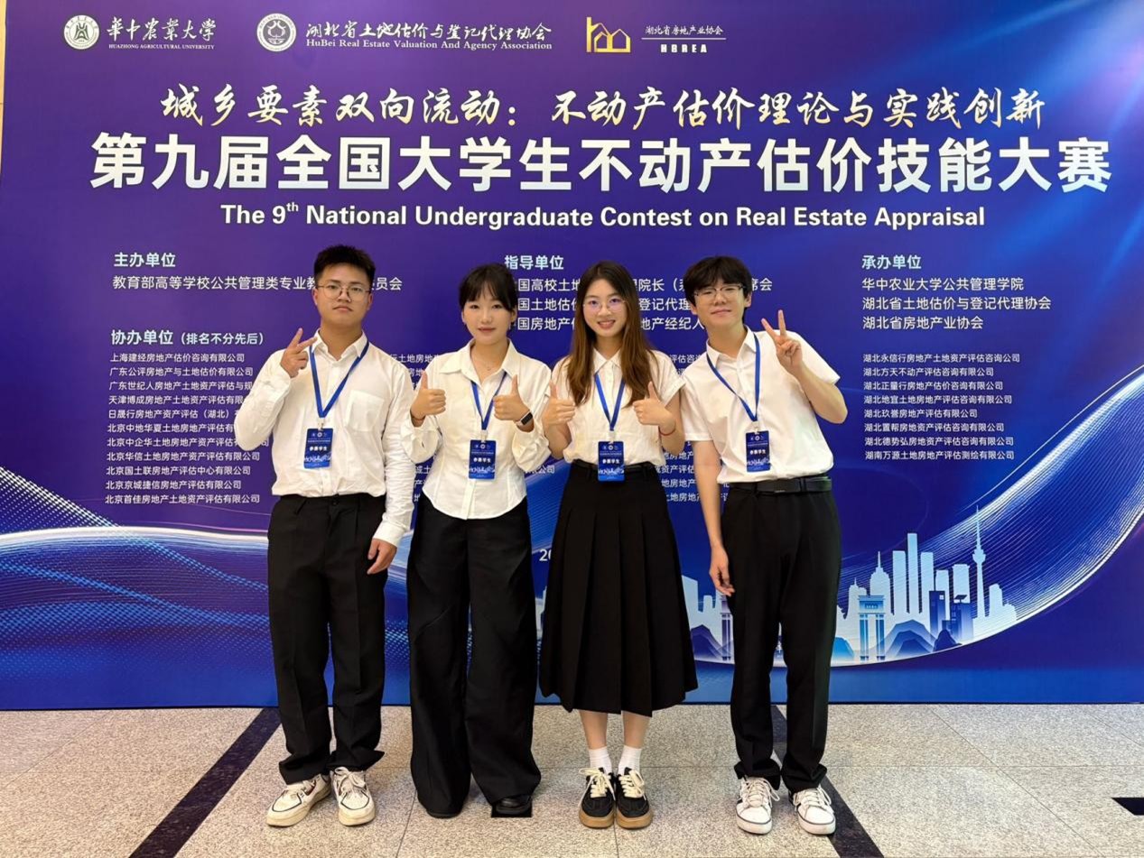 近日,第九届全国大学生不动产估价技能大赛决赛在华中农业大学圆满落幕。在廖喜生老师的指导下,det365官网2022级土地资源管理专业本科生杨健祎、张佩芝、唐家玉、王昱昊凭借参赛作品《广元市剑阁县普安镇水池村冬枣水果林市场价值评估》表现出色,最终荣获大赛一等奖。