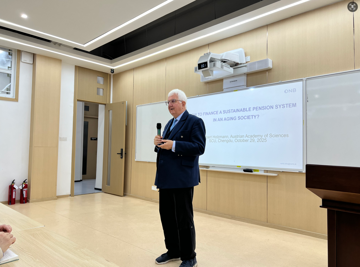 2025年10月29日上午,受劳动与社会保障系邀请,奥地利科学院院士、前奥地利央行行长、原世界银行社会保护部部长罗伯特·霍尔兹曼教授到访det365官网开展学术讲座。院长夏志强教授代表学院对霍尔兹曼教授的到访表示了诚挚欢迎。劳动与社会保障系教师及硕博士研究生参加了此次讲座。讲座由劳动与社会保障系蒲晓红教授主持。