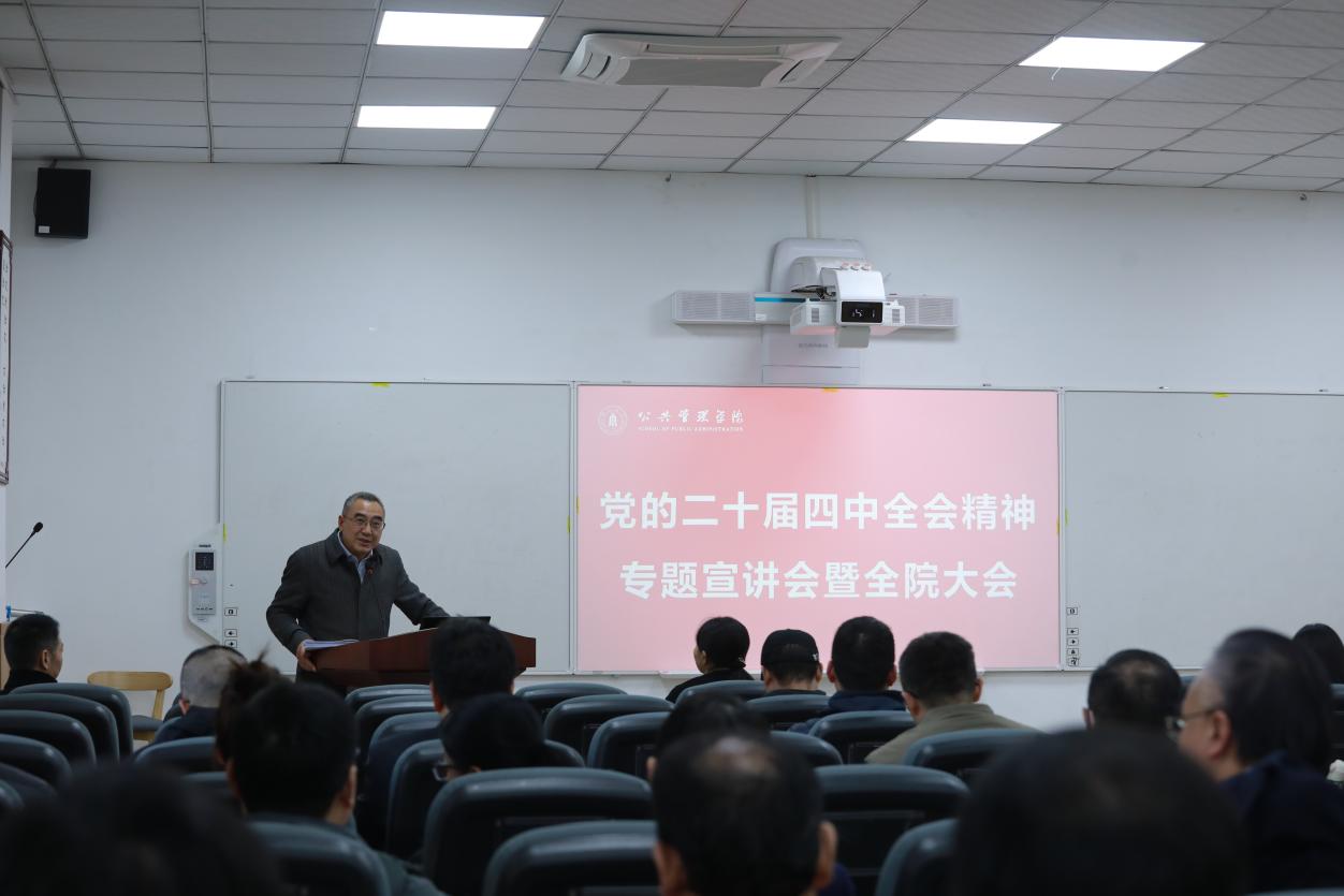 学校学习贯彻党的二十届四中全会精神宣讲团成员、学院院长夏志强以“十五五规划精神与公共管理学科发展”为主题做宣讲报告,他阐释了党的二十届四中全会的重大意义,解读了“十五五”时期经济社会发展的指导方针、主要目标、战略任务、重大举措和根本保证。他系统总结了学院“十四五”期间的发展成绩,强调要紧密对接国家“十五五”规划方向,紧跟时代发展步伐,科学编制学院“十五五”规划。