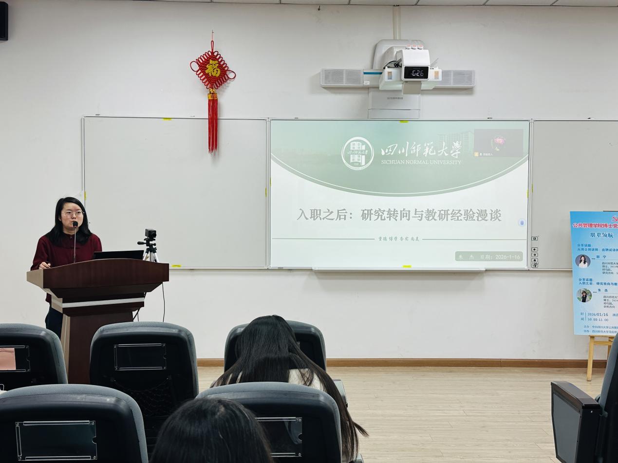 两位优秀学姐结合自身经历,聚焦青年学者发展路径进行了分享。郭宁老师以《从博士到讲师:应聘试讲的实战技巧》为题,从学校优势、试讲技巧到教学方法,全景式分享了自身的求职与工作心得,鼓励同学们通过不懈努力,走好站上讲台、站稳讲台到站好讲台的每一步。