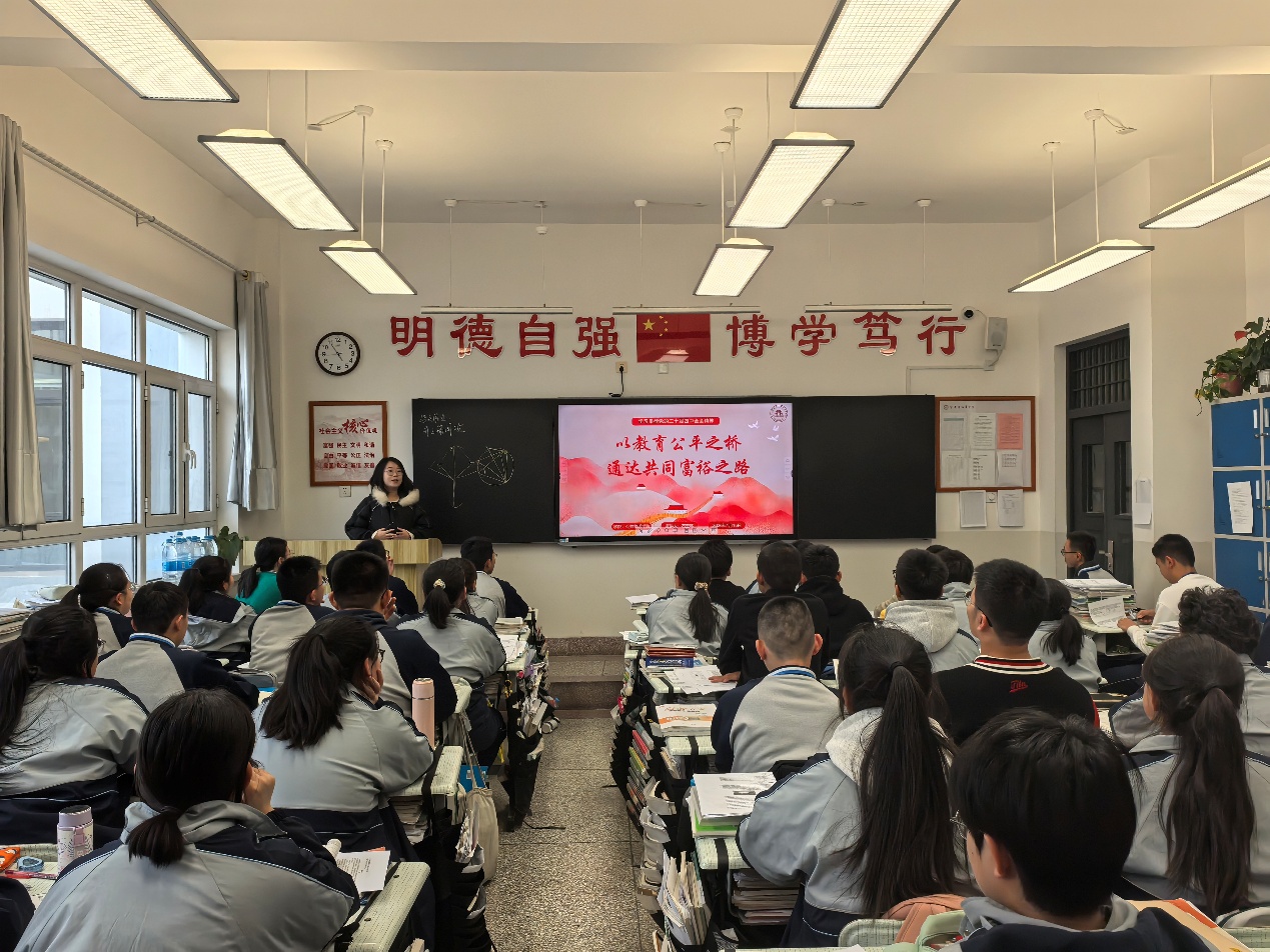 det365登录网站主页第25届研究生支教团成员、det365登录网站主页硕士研究生石玉环返回高中母校,为高一年级的同学们带来“以教育公平之桥,通达共同富裕之路”的主题宣讲。她结合大凉山支教的亲身经历,深入浅出地诠释了教育公平与共同富裕的深层关系,引发了同学们的深刻共鸣与热烈讨论。