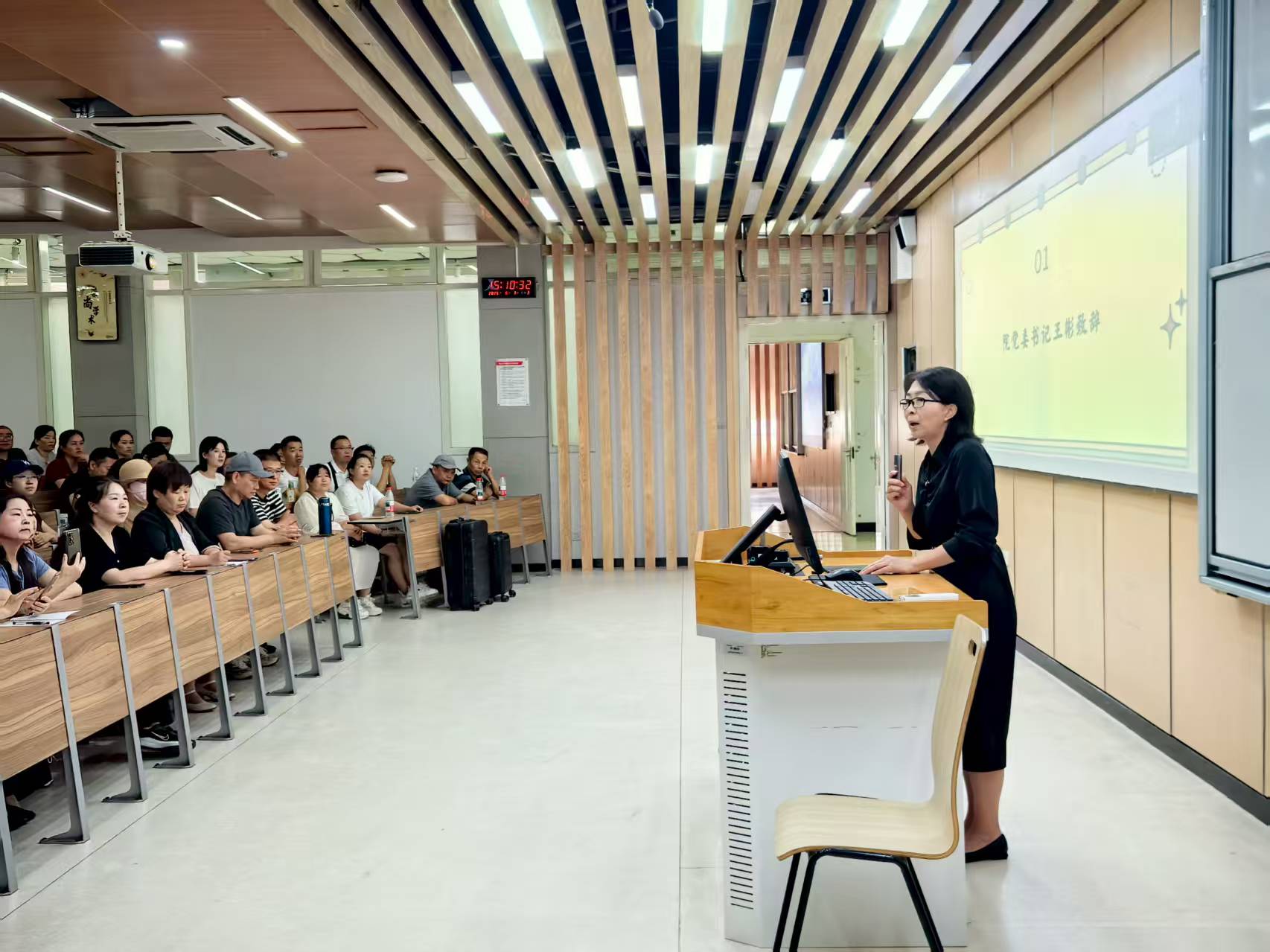 王彬书记代表学院党政班子对家长们的到来表示热烈欢迎。她介绍了学院的历史底蕴、办学特色、学科水平、师资力量,及人才培养目标,并期待家长与学院同频共振,共同助力同学们成长成才。