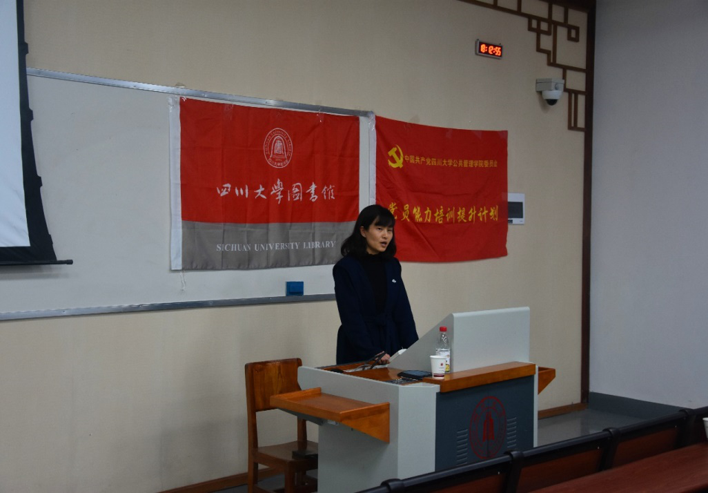 接下来,图书馆教师代表张宸老师和学生代表17级图书情报与档案管理专业的吴晓梅同学围绕“川大校史和红色基因传承”的主题,与大家分享了她们的对我校历史和对红色精神传承的领悟。