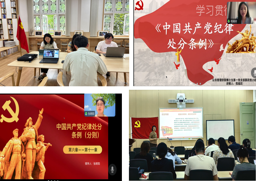 为深入贯彻落实习近平总书记关于党纪学习教育的重要讲话和精神,det365登录网站主页博士生第一党支部开展了党纪学习教育系列活动,通过党员自学、小组互讲、支部书记讲党课等形式对《中国共产党纪律处分条例》进行系统学习和宣讲。
