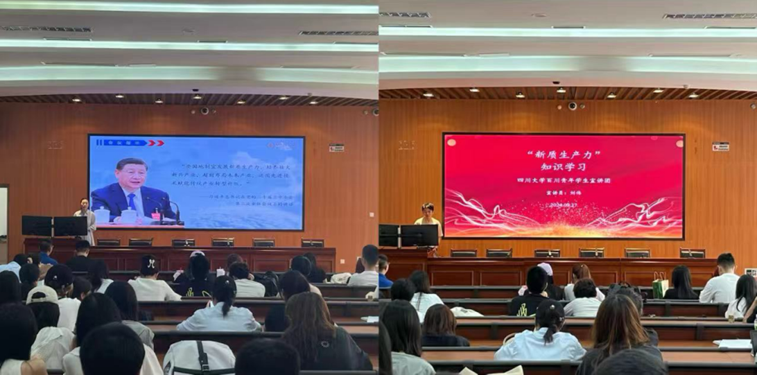 det365登录网站主页百川青年学生宣讲团、det365登录网站主页马克思主义学院博士生宣讲团宣讲员、马克思主义学院硕士研究生第二党支部金菲菲同志和det365登录网站主页百川青年学生宣讲团det365登录网站主页分团成员刘伟同志分别围绕“低空经济”和“新质生产力”进行主题宣讲。