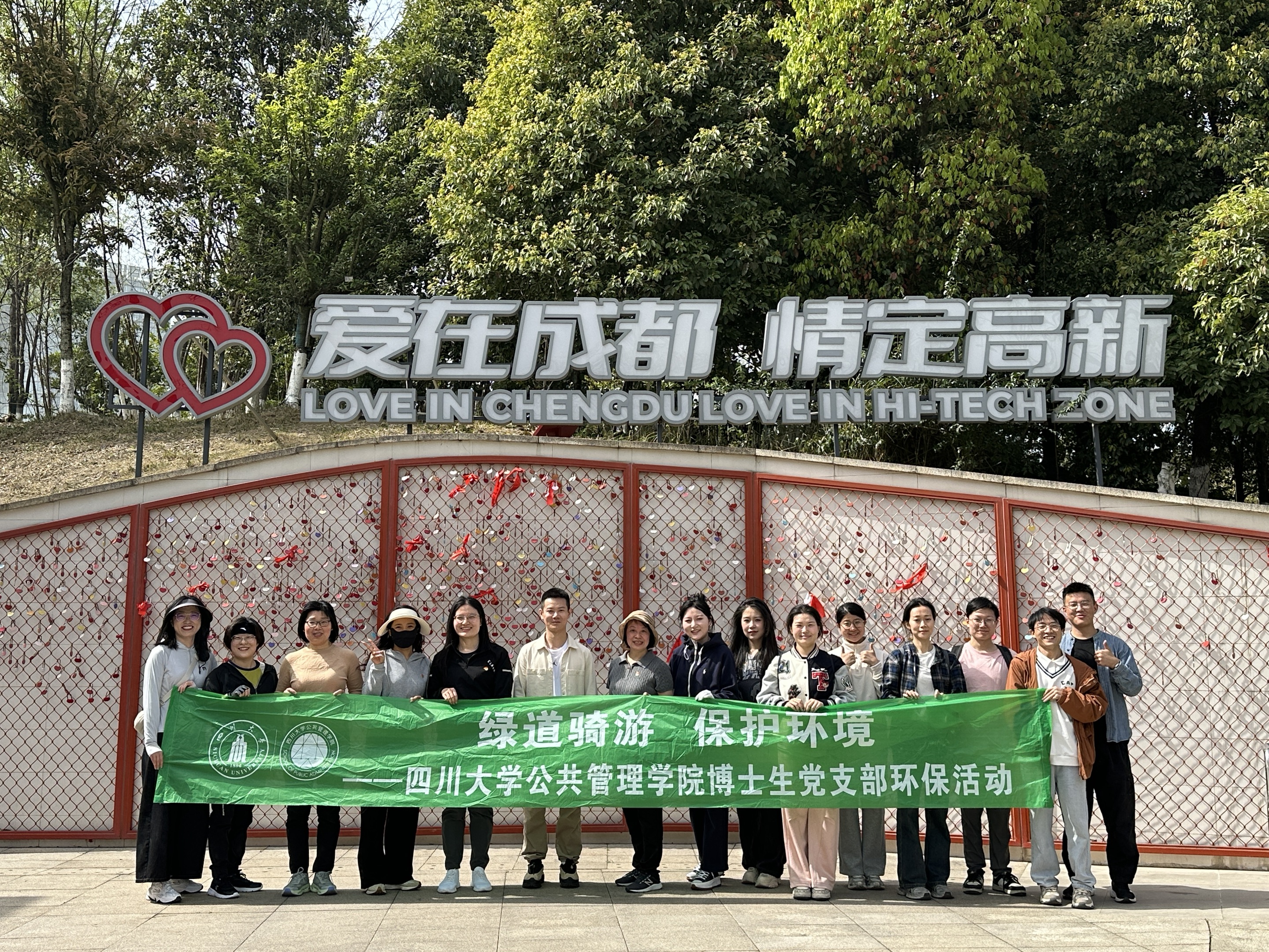 活动前,支部委员通过实地勘察,精心策划,安排了骑行路线。博士生骑行队伍自锦城湖公园2号湖入口整装出发,穿越桂溪生态公园、中和湿地公园、白鹭湾湿地生态长廊,历时2个多小时,完成14公里骑行。骑行途中,师生通过学术探讨、环保经验分享与日常交流,将春日骑游转化为生动的实践课堂。活动既展现了绿色出行理念,又在师生交流互动中强化了团队凝聚力,实现了党建引领、生态教育与协同育人的深度融合,为博士生人才培养注入新活力。