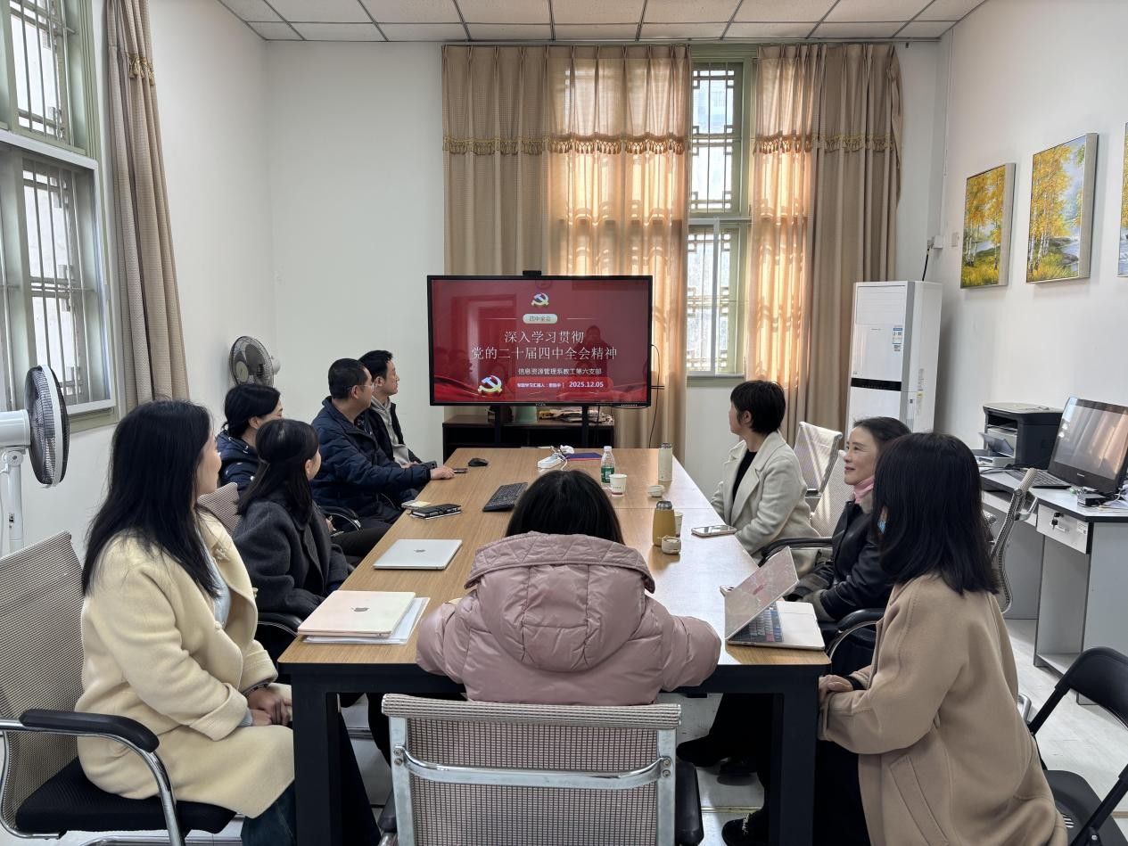 12月5日,det365登录网站主页信息资源管理系党支部在学院317室召开“深入学习贯彻党的二十届四中全会精神”主题党日暨专题党课。支部全体党员参加会议,活动由党支部书记李桂华同志主持。