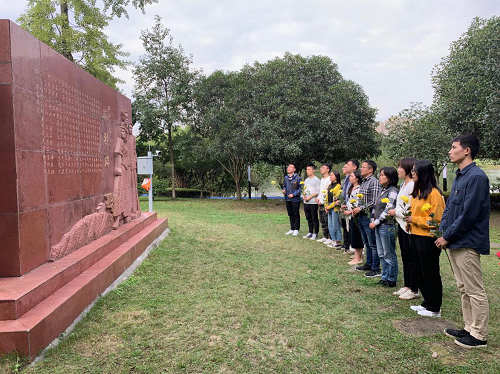 座谈会后,与会师生前往江安校区川大英烈碑,为川大的革命先烈献花。庄严的国歌响起,望着英烈碑上镌刻的文字,学院师生无不感受到川大人浓厚的爱国情怀。全体人员手持鲜花,庄严肃立,向英勇献身的川大革命先驱们默哀致敬。随后,师生依次敬献手中鲜花,瞻仰英烈纪念碑。