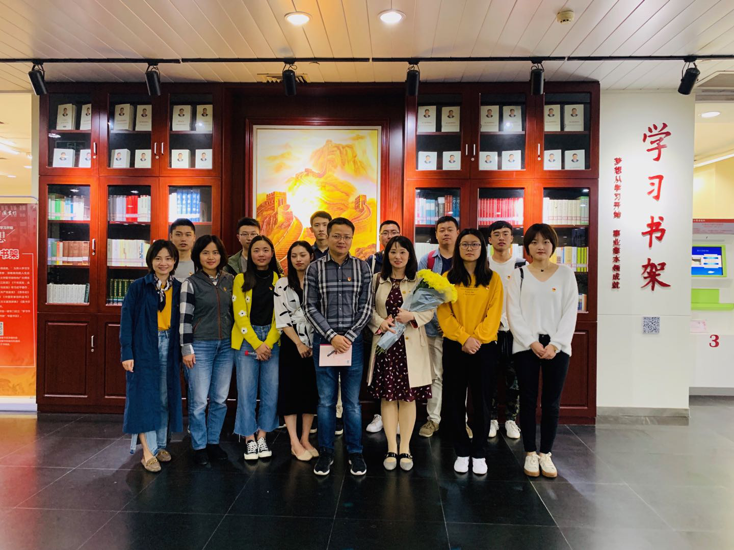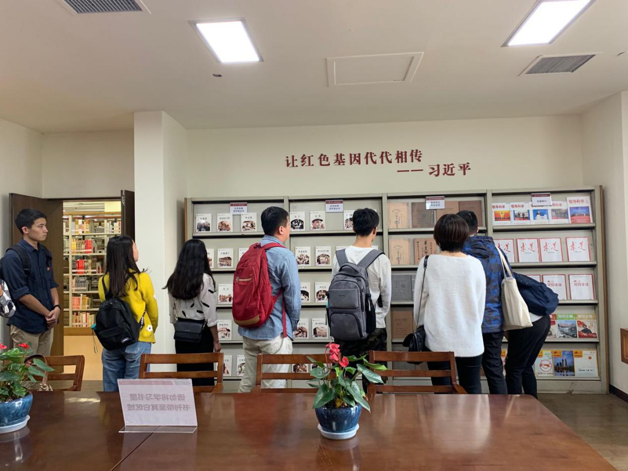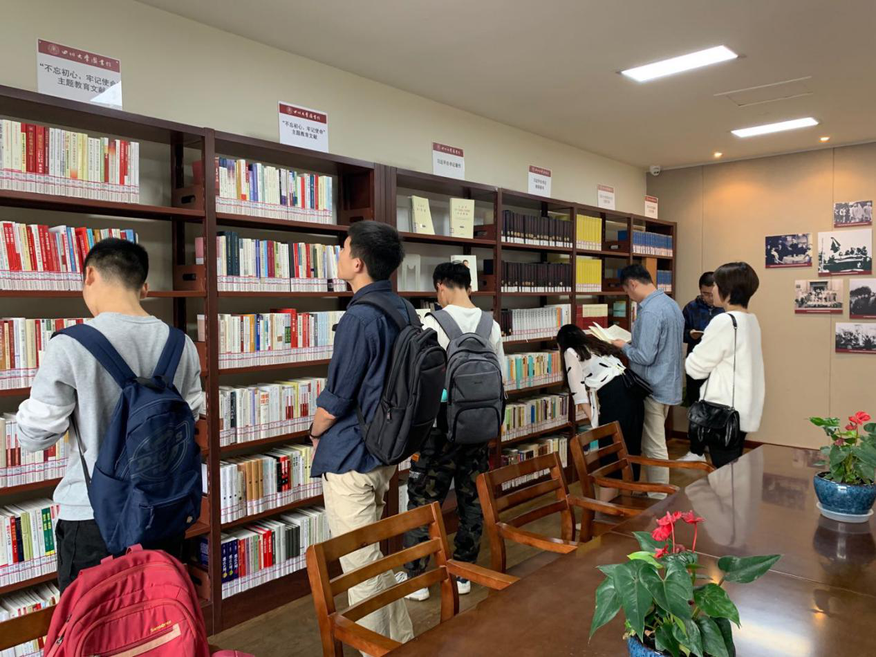 在杨磊副书记的带领下,学院一行人首先前往江安校区图书馆内的红色文化阅读空间——“学习书屋”进行参观。该书屋由校图书馆、川大出版社和中国红色文化研究会携手共同建设,集中收藏和展示了习近平总书记著作、习近平同志推荐的图书以及“不忘初心、牢记使命”主题教育专题文献、det365登录网站主页革命文化主题文献等丰富的藏书,学习书屋还收集了朱德、吴玉章、张澜、江姐等在det365登录网站主页学习和工作的革命志士和英烈的传记类、纪念性和研究性文献,以及det365登录网站主页出版社出版的红色文献等。
