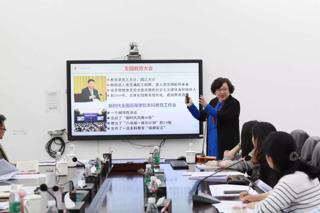 姜晓萍书记首先宣讲4月18日学校“新时代本科教育改革与发展大讨论”的主要精神和工作部署,传达了王建国书记、李言荣校长、张林副校长对川大本科教育升级再出发工作的重视与讲话要点,再结合校领导提出的面向未来聚焦本科教育改革发展六大关键环节阐释det365官网推进本科教育改革发展的引领要旨与战略思路,表示学院一定会全方位、全力保障本科教育的改革与发展。