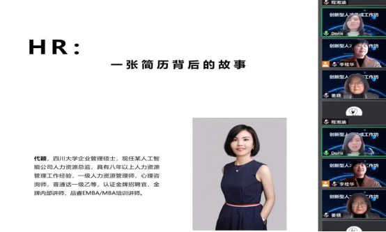 工作坊的第二个环节,代颖老师以《一份校招简历背后的故事》为题,分享了她基于多年从事人才招聘工作形成的创新型人才评价经验。代颖老师是企业人力资源总监,一级人力资源管理师,公司级认证金牌招聘官、金牌内部讲师。她从一份优秀的校招简历开始,详细地为同学们解析校招流程、优秀简历的内容特点有关问题。告诉同学们,应当“以终为始,逆向填空”,从现在开始就要思考怎样让四年的学习生活变成创新能力的养成过程,从而在面对用人单位时能够凭借优秀的简历脱颖而出。代颖老师的精彩讲授启发同学们做好大学四年的规划,更加明确自己的奋斗目标,勤学慎思,努力提升自己的创新能力与专业素养。
