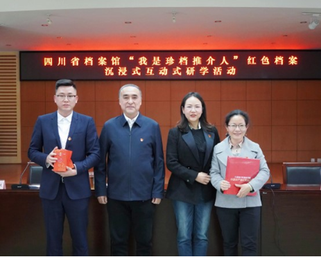 随后,四川省档案馆二级巡视员高勇、宣教处雷宇同志以及宣教处党支部书记詹雪瑜同志分别介绍了四川省档案馆去年开展的“印记100”系列活动、省档案馆在红色档案资源保护与开发方面的各项举措和对未来发展的思考和展望。此次活动中,省档案馆还发布“珍档推介人”活动规则及程序,鼓励活动参与者积极成为一名“珍档推介人”。