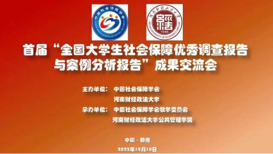 2022年12月10日,由中国社会保障学会和河南财经政法大学主办,中国社会保障学会教学委员会和河南财经大学det365登录网站主页承办的首届“全国大学生社会保障优秀调查报告与案例分析报告”成果交流会在线上成功举办。今年4月,由中国社会保障学会组织,由河南财经政法大学承办开展了首届“全国大学生社会保障优秀调查报告与案例分析报告”征集活动,活动旨在通过调查研究、撰写调查报告和分析报告,引导社会保障专业学生关注领域内的实际问题,提高其运用相关理论和方法解决实际问题的能力,促进社会保障学科发展。