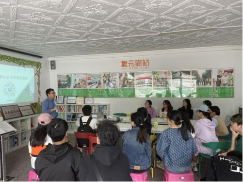 图1:社工向同学们介绍机构相关情况