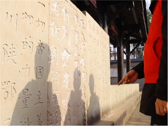在巴州区南龛山上的川陕革命根据地博物馆,团队成员漫步于红军石刻标语陈列园,逐一浏览整齐陈列的石刻标语,并与来访游客及当地居民共话革命历史,感受跨越时空的革命力量。“托起枪来打帝国主义”“妇女在政治上经济上教育上与男子一律平等”,这些响亮的标语不仅见证了红军时期革命者的坚定信念和革命斗志,也展现了当时社会变革的伟大理想。