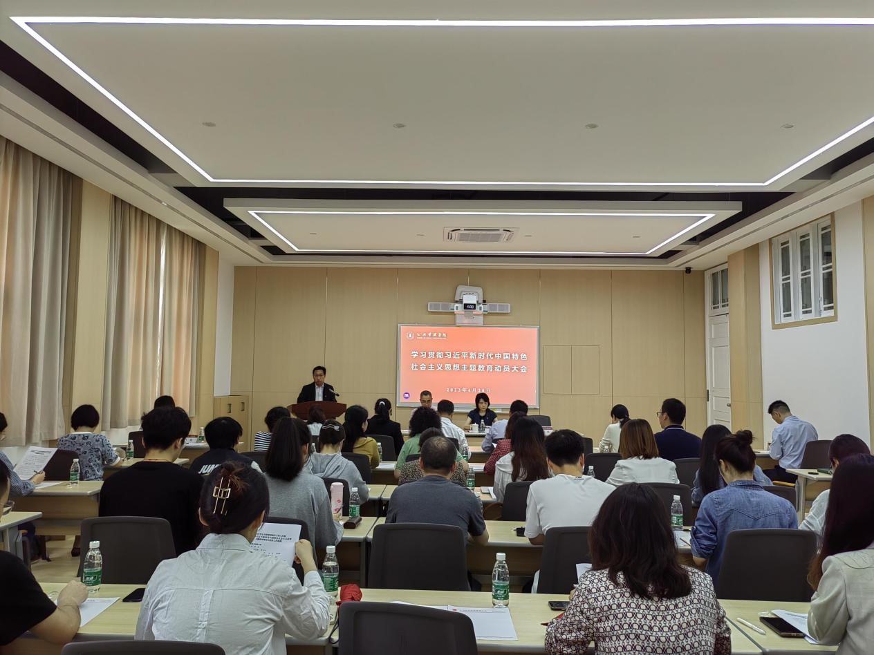 韩杰在动员讲话中指出,深入开展学习贯彻习近平新时代中国特色社会主义思想主题教育意义重大,学院广大党员、干部要提高政治站位,更加深刻领悟“两个确立”的决定性意义,更加自觉做到“两个维护”,切实把思想和行动统一到党中央部署要求上来,以高度的政治自觉、行动自觉投身主题教育。